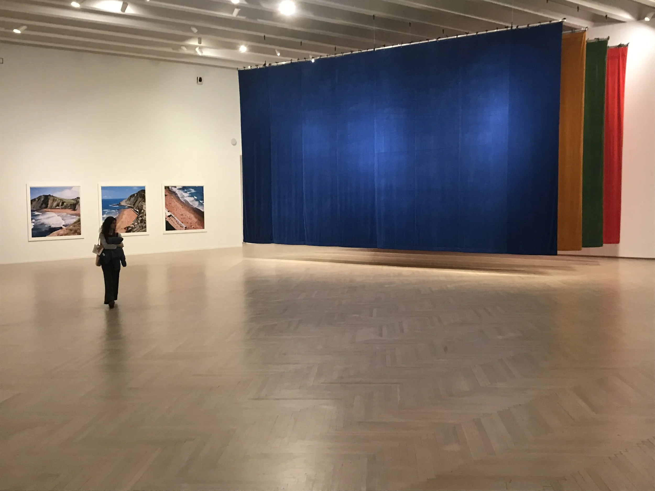 Au Kursaal, d'autres interventions enrichissent le panorama concernant la démarche de Maider Lopez dans l'espace public et naturel. Le rôle des couleurs est magnifié par l'espace central et celui de la mezzanine où d'immenses rideaux monochromes s'imposent aux visiteurs tandis que chaque plan de l'espace a été repeint d'une couleur différente avec les chiffres exacts de ses dimensions. L'exposition embrasse de nombreuses approches collectives de l'espace. De même, lorsque Maider Lopez a invité les plagistes de Zumaia à utiliser exclusivement des serviettes rouges, le résultat est saisissant, puisque cette journée balnéaire prend aussitôt une dimension surréaliste, à la poésie simple et questionnante. Bref, l'espace n'est jamais inéluctable, il est indexé à nos perceptions mises en évidence grâce au jeu des couleurs et aux interventions orchestrées par l'artiste. La vie publique dépend de nos actions.
