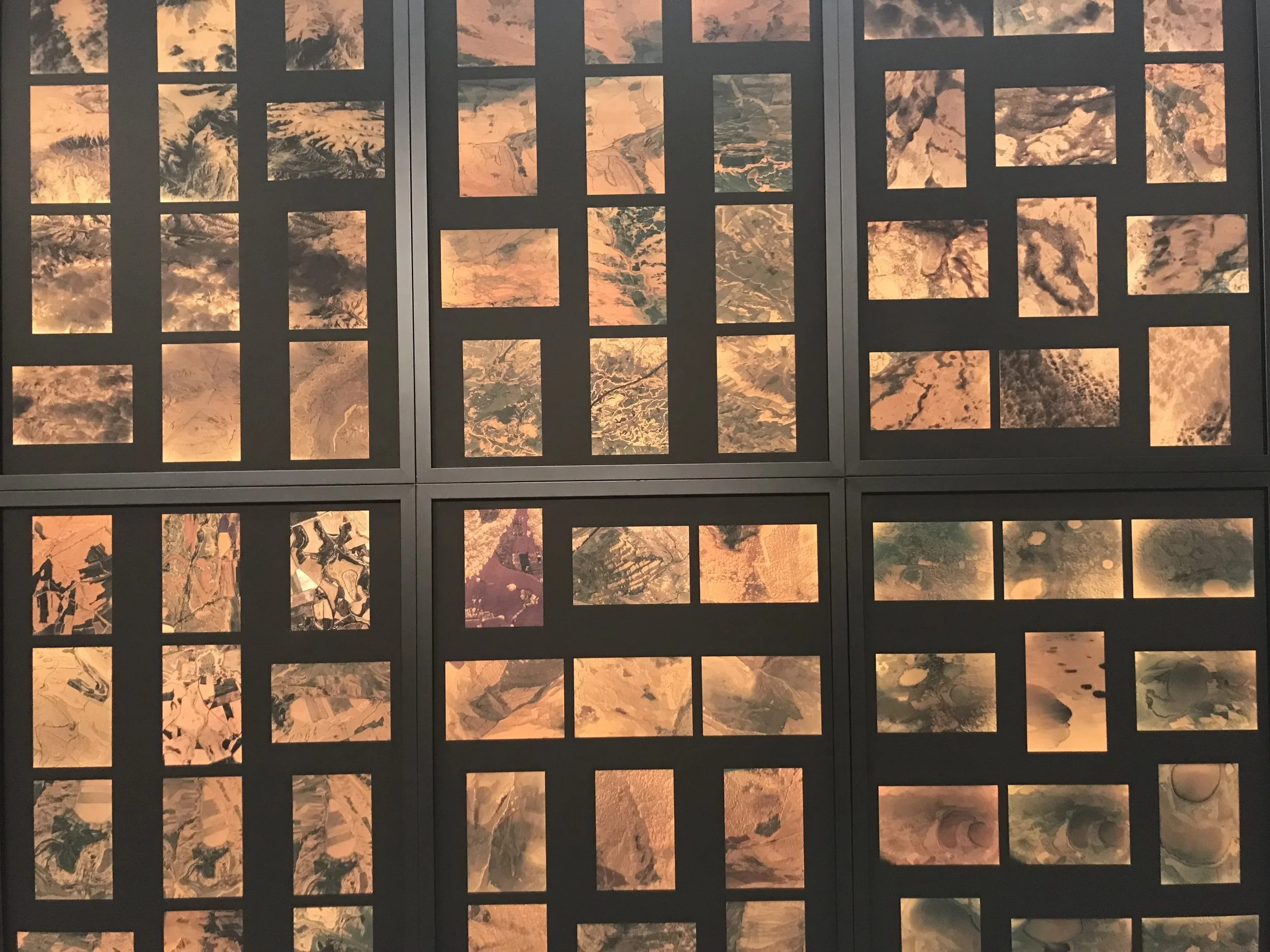 Dans l'espace principal, le travail sur des négatifs de photographies constitue un pied de nez artistique à l'ère digitale. Il s'agit d'un point de départ pour la représentation du monde enrichi de multiples couches de matières et de techniques : la peinture, la photographie, la résine. A la fois proches de l'abstraction et tangibles, les oeuvres hybrides de Dario Urzay enchantent la sensibilité du visiteur. Par ailleurs, avec des vues de haut en bas, plusieurs images aériennes vont délibérément à l'encontre des perspectives d'une photographie plus traditionnelle. Ici l'artiste joue avec les échelles. D'autres images prises au microscope se trouvent mêlées à des cartes géographiques, de sorte que la vision s'avère être incapable de distinguer les veines d'un corps et le cours des rivières ou des fleuves. Avec Point de vue lointain (si proche), le regard se brouille et découvre l'étrange plaisir d'être perdu entre les approches micro et macro. En ce sens, la beauté des oeuvres de Dario Urzay semble remplir le silence effrayant des espaces infinis de Pascal, pour qui la finitude humaine demeure à jamais incapable de saisir l'univers infiniment petit et infiniment grand.